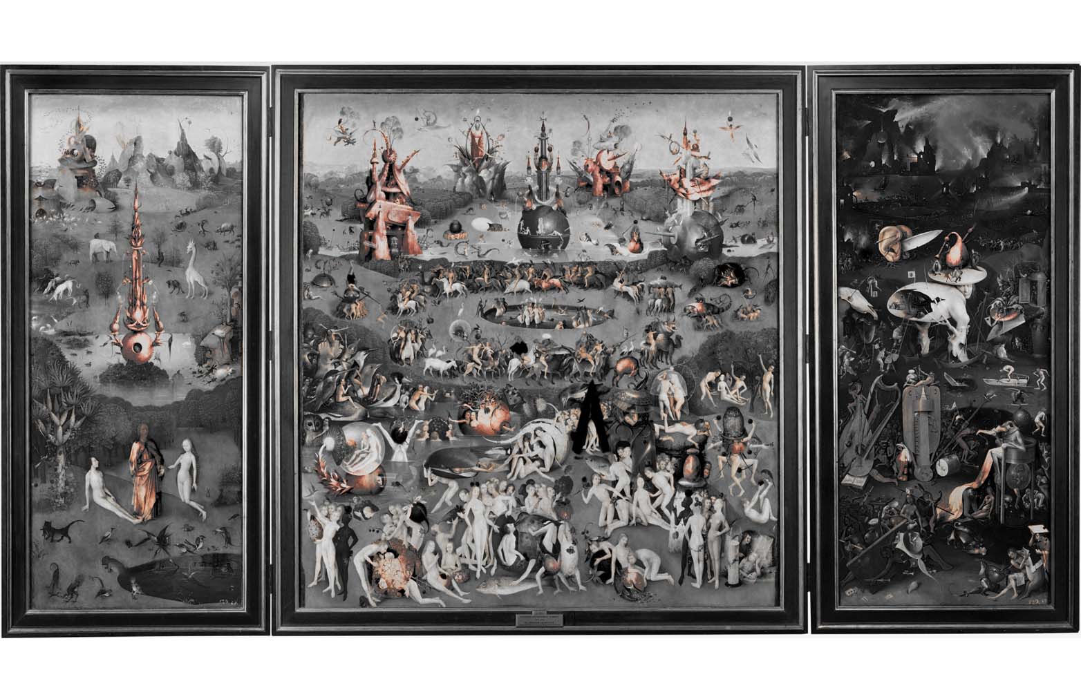 The use of pink is especially interesting in El Bosco’s “Garden of Earthly Delights”, here pulled out and amplified.