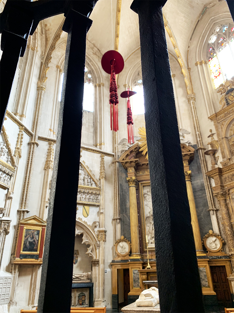 There is no shortage of sculpture, painting, and intricate ornamentation to flood the senses inside the cathedral. Of particular interest, however, is the Monstrance of Arfe, a grand receptacle for displaying the consecrated host in the Catholic Church. The monstrance and its base, called the pedestal of angels, stands at ten feet tall and is made entirely of solid gold, silver, and jewels. It is said that the gold of the monstrance was the first of that brought back by Christopher Columbus from the New World. This claim raises obvious ethical flags when considering who benefits and suffers in the construction of over the top religious symbols of dominance and wealth that may, in part, be funded by exploitation.
