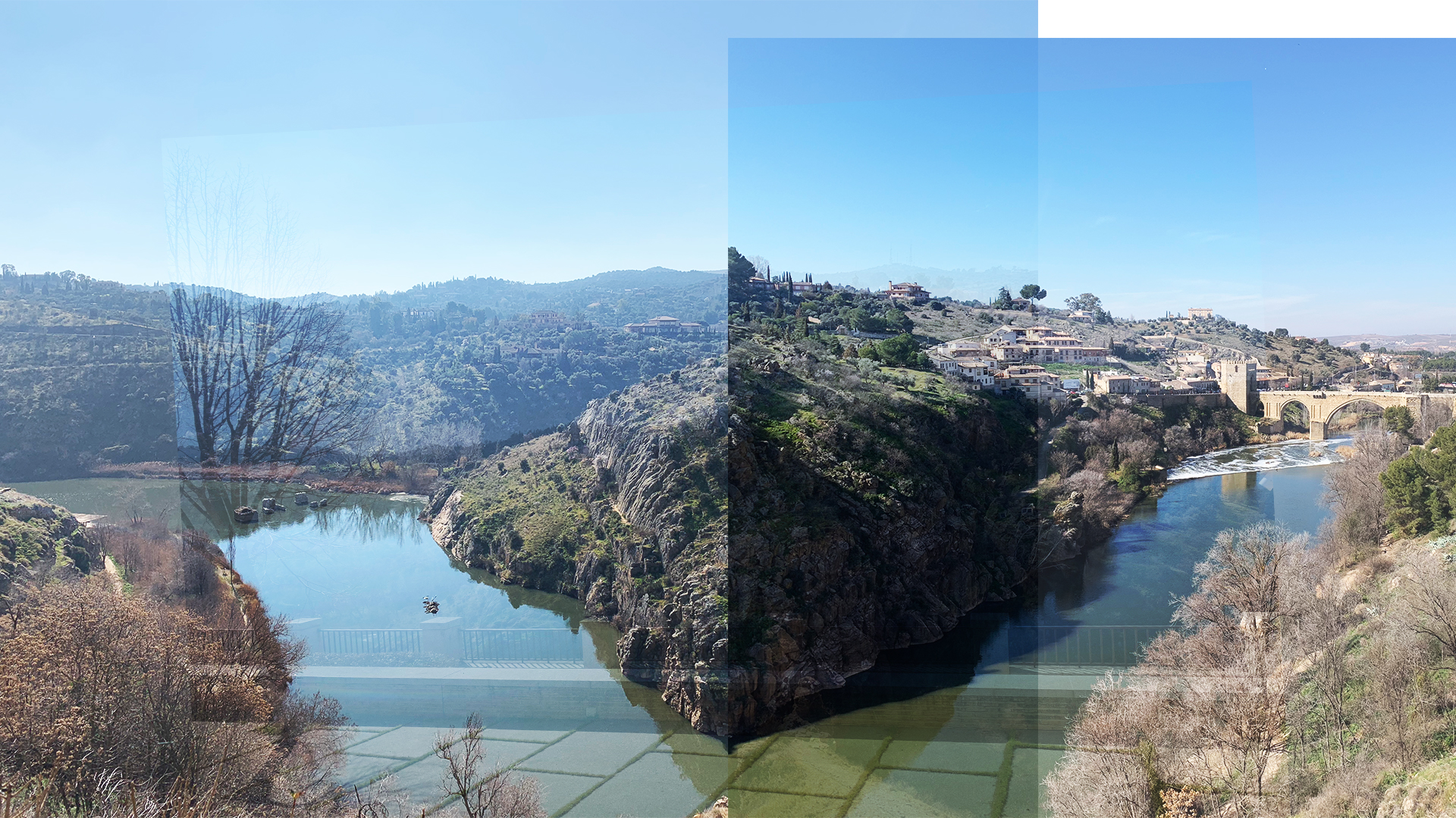 A collage of the Rio Tajo from three vantage points, one of which several of us traversed to following a worn path from Paseo del Tránsito.