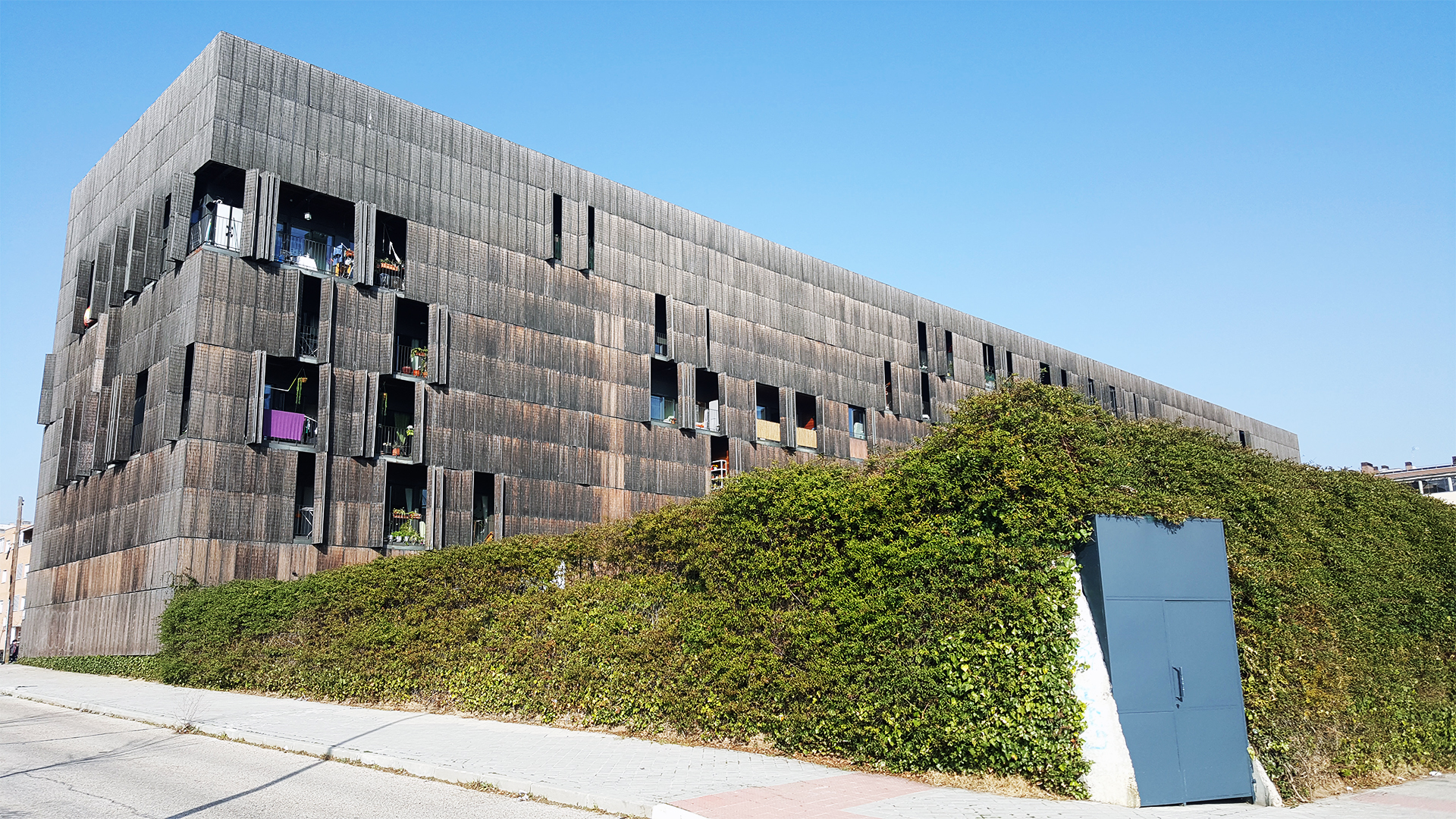 Public housing on the outskirts of Madrid in the neighborhood of Carabanchel. The use of a double facade to mediate the summers high temperatures.