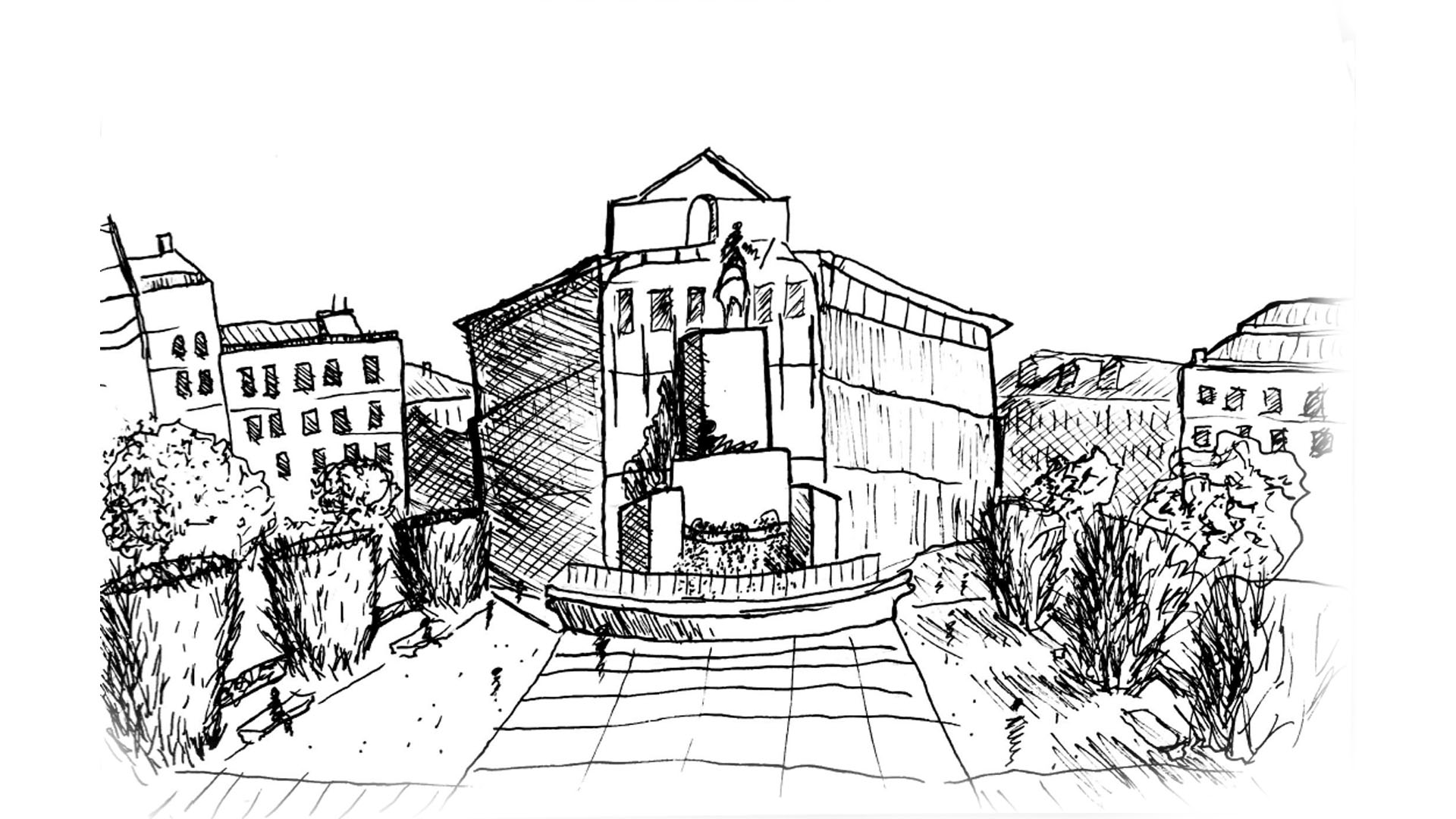 Sketch of behind the Opera in the Plaza de Oriente. This location is right in front of the Palacio Real de Madrid.