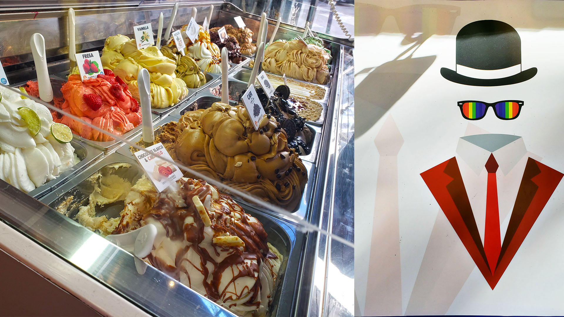 Trendy Chueca neighborhood art and food. Some of our group stopped to purchase ice cream at the Mercado San Anton.
