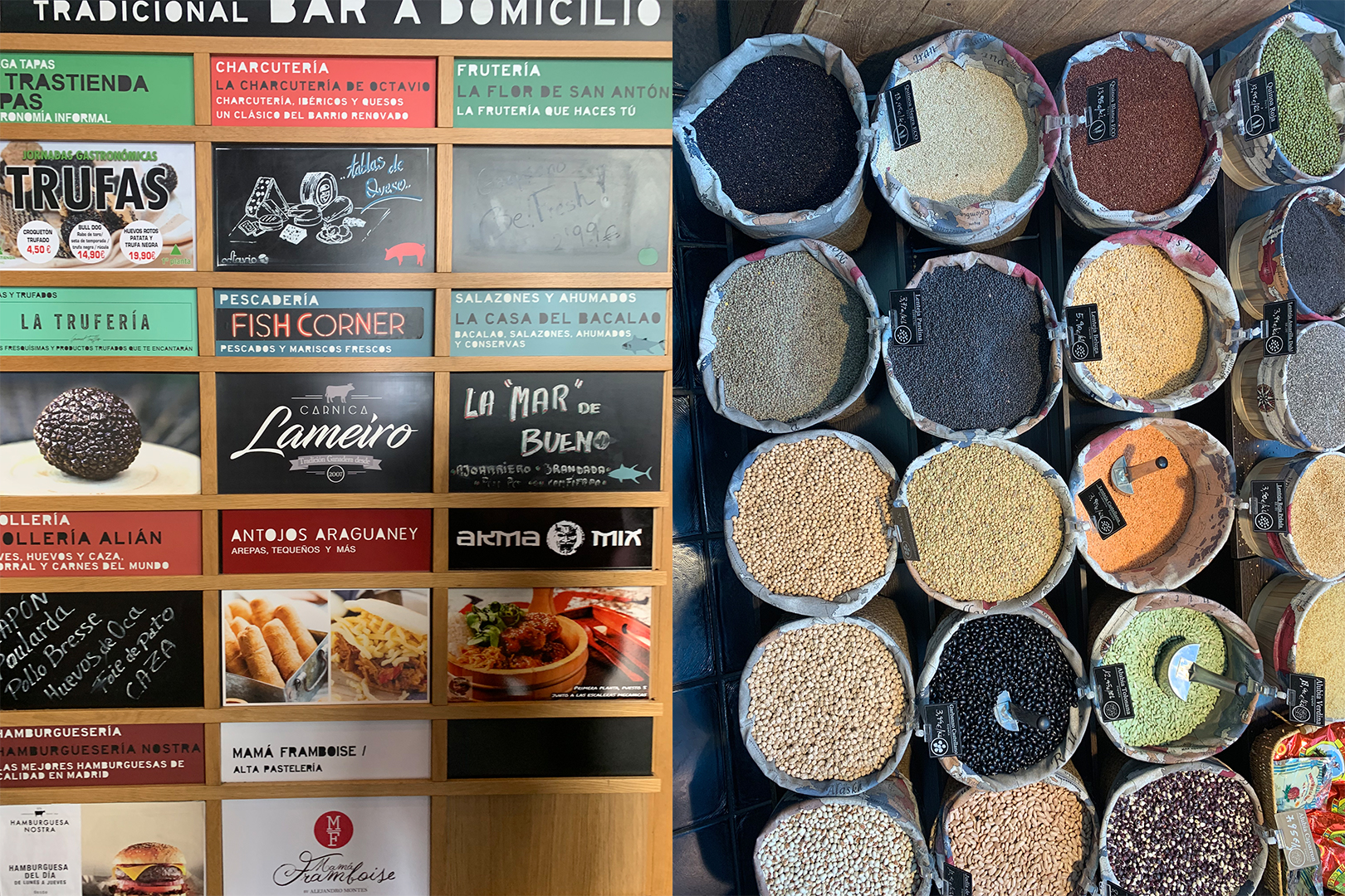 Colorful layouts at Mercado San Antón in Chueca.