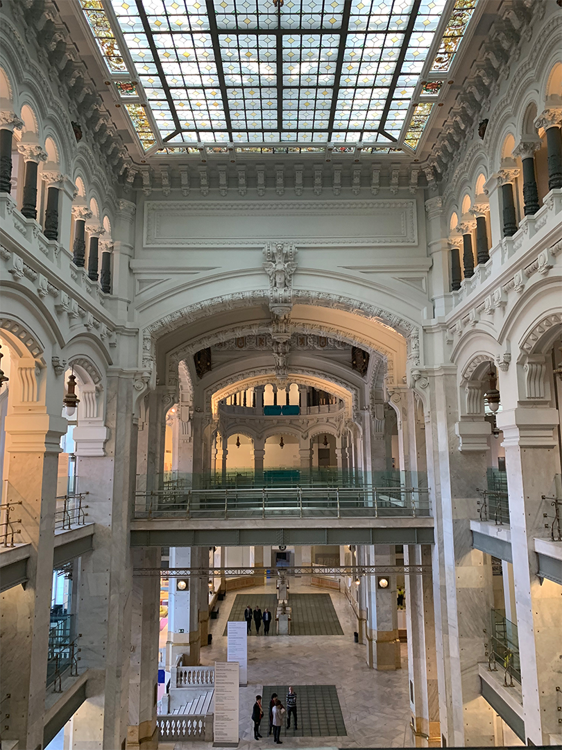 The interior of the former Post Office turned City Hall, designed by Antonio Palacio in 1910. Some of the old infrastructure for the postal service (like dropboxes and tubes) still remain.