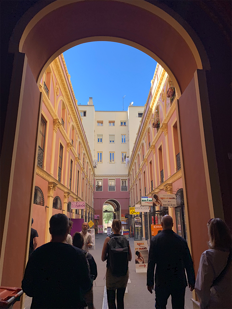 A paysage, which is common in Paris. Spanish urban designers and architects often took cues from the French. They’re typically full of antique shops and other more curious businesses, but this one had a salon and a convenience store.