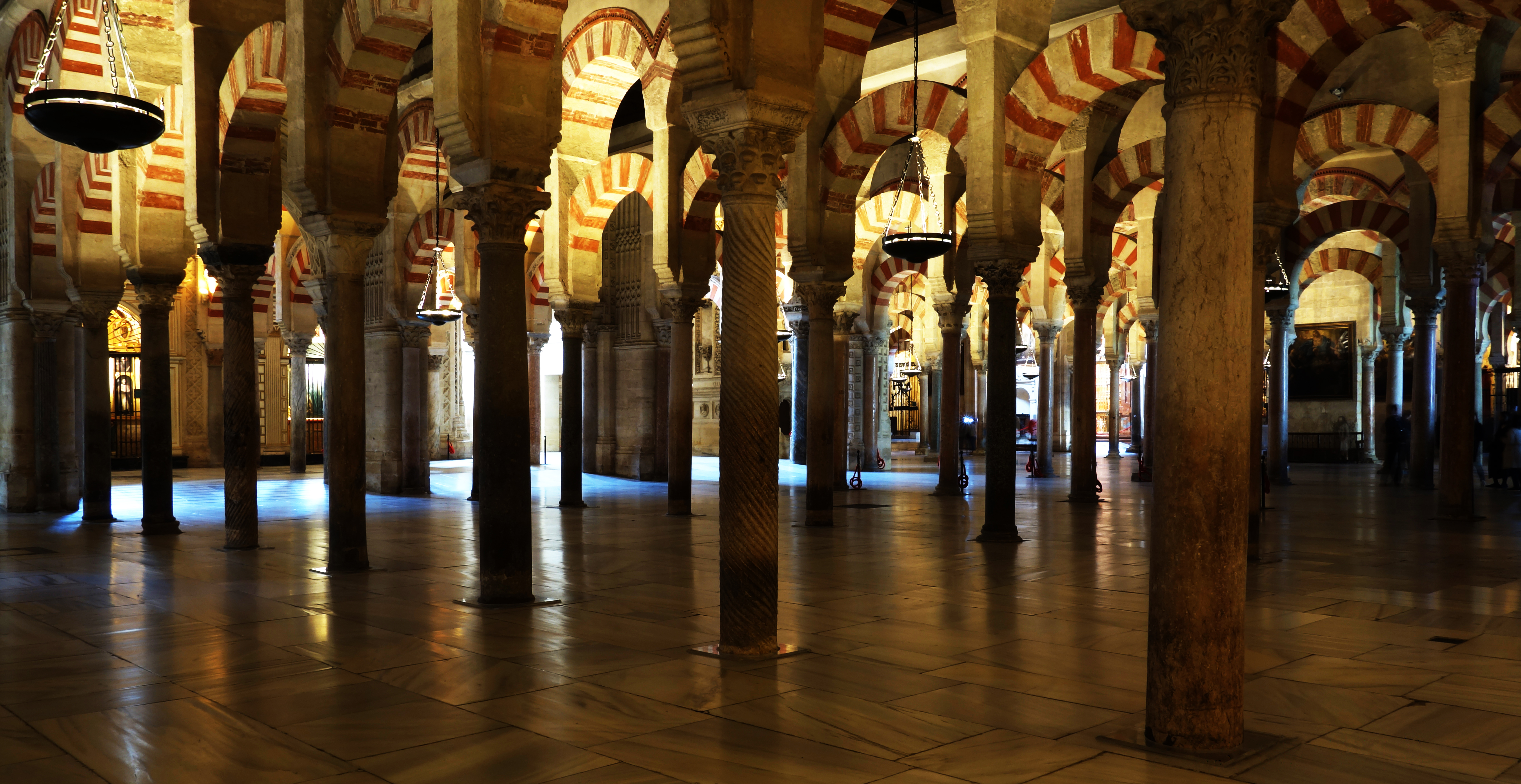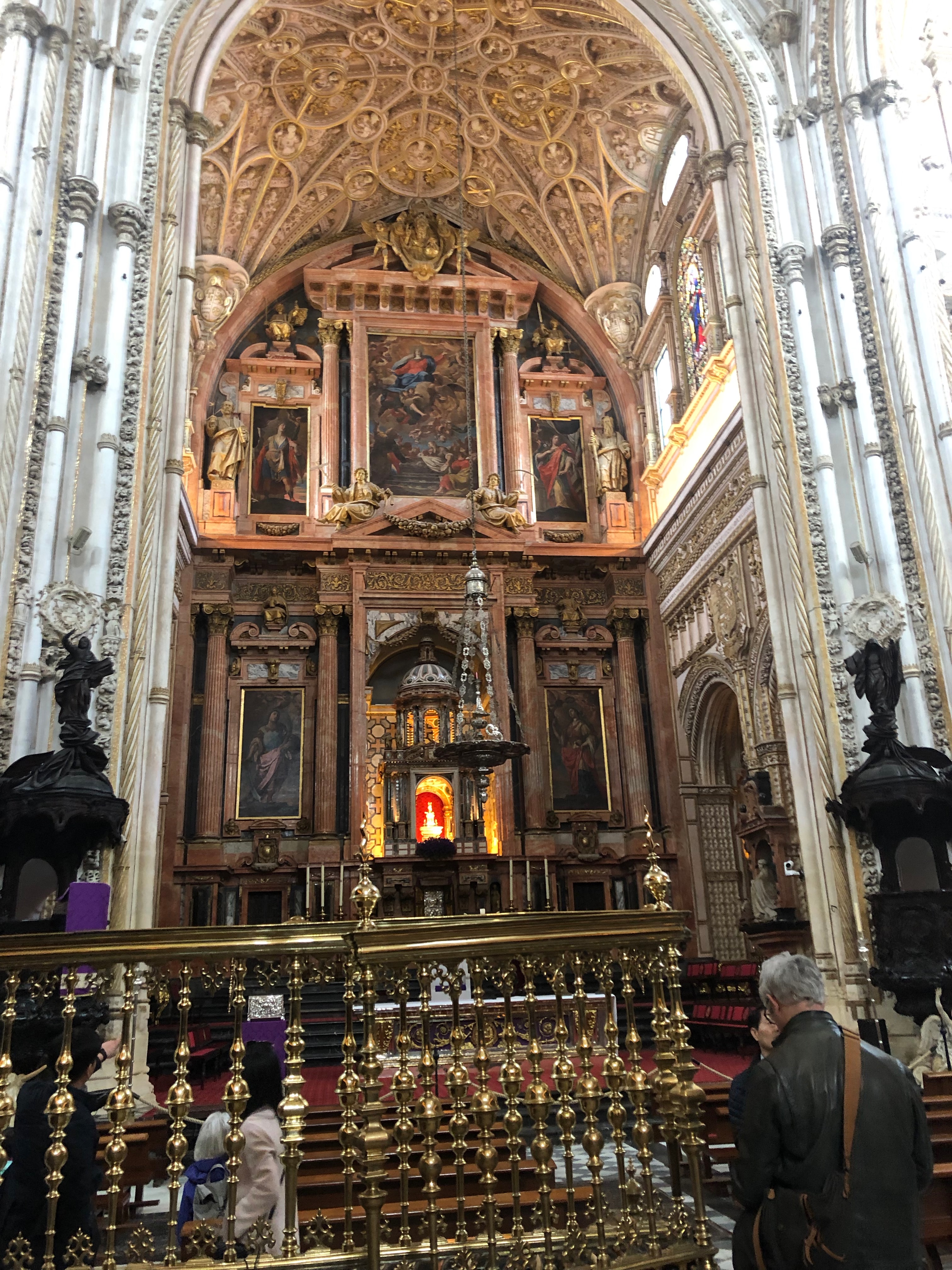 The Mesquite-Catedral is a structure that has been expanded upon over the centuries and now is used as a church. Small chapels and memorials ring the building. Then there is an infinity of columns and two-story arches. In the center is an elaborate barrel ceiling church. The contrast between spaces is stark, but somehow they make a cohesive entity. The interior of the building is chilly and rather dark. Even in areas were light shines through skylights or clerestory windows, warmth is fleeting.