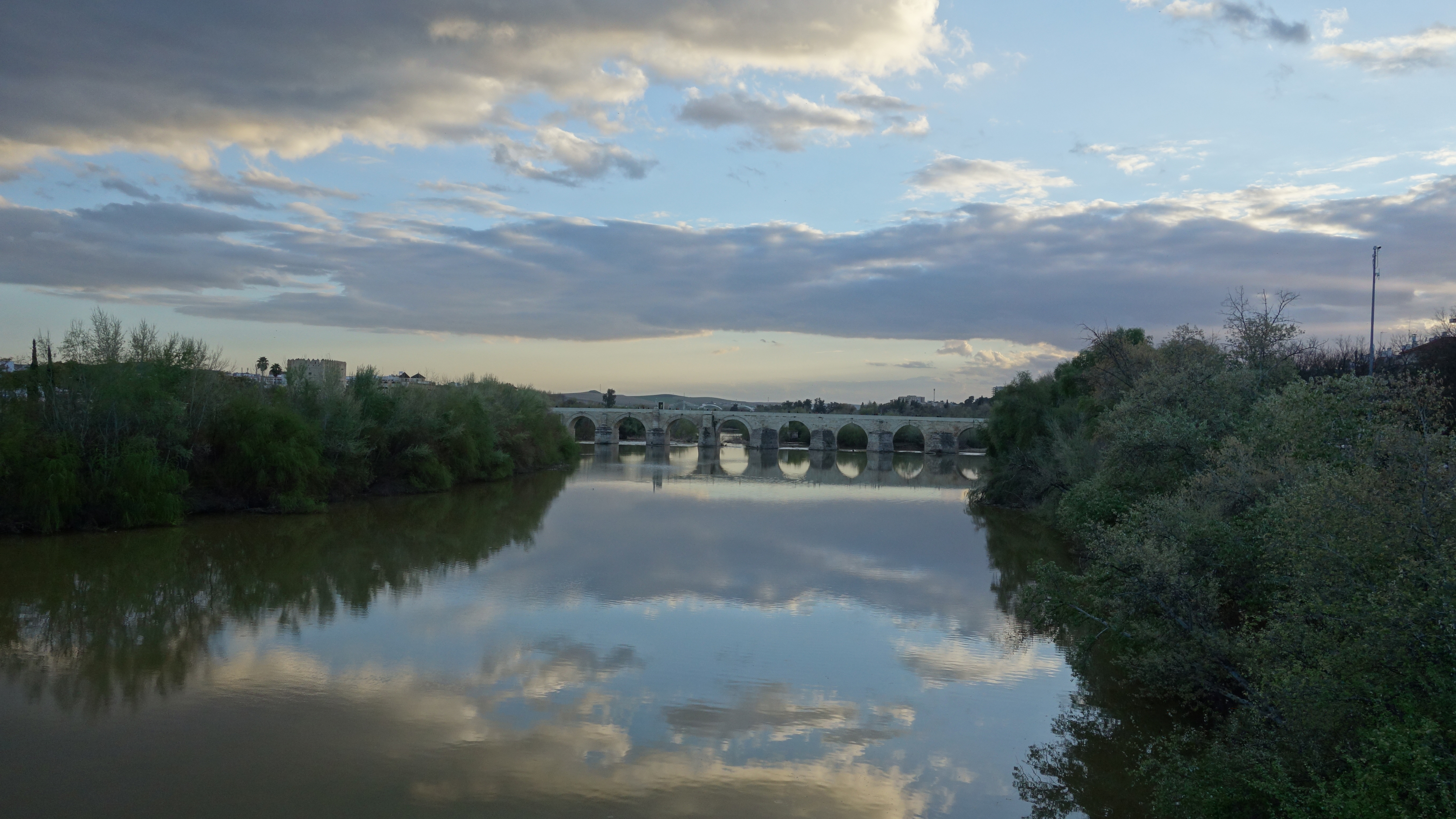 After visiting the church we walked to the Guadalquivir River and crossed a pedestrian only bridge, similar in ways to the Stone Arch Bridge back in Minneapolis, but much older. Musicians were dispersed across the span and all but the accordion player didn’t intrude on the sound threshold of the other performers. On the return crossing of the river we crossed on a typical multi-use bridge, centered primarily on car traffic. The sun began to set. And evening plans for dinner were being made.