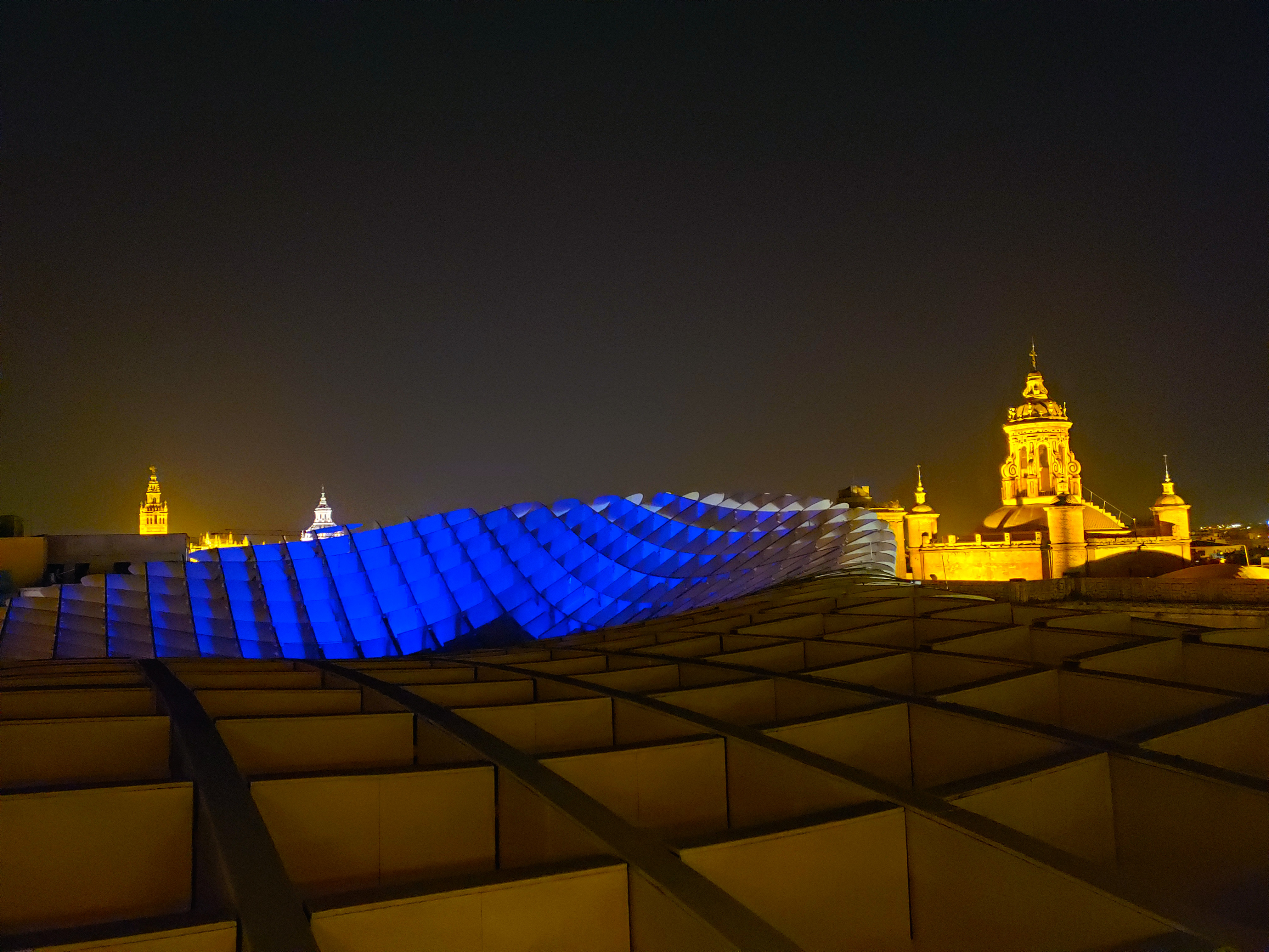 The top of “Las Setas” at night in Sevilla. -Alexis
