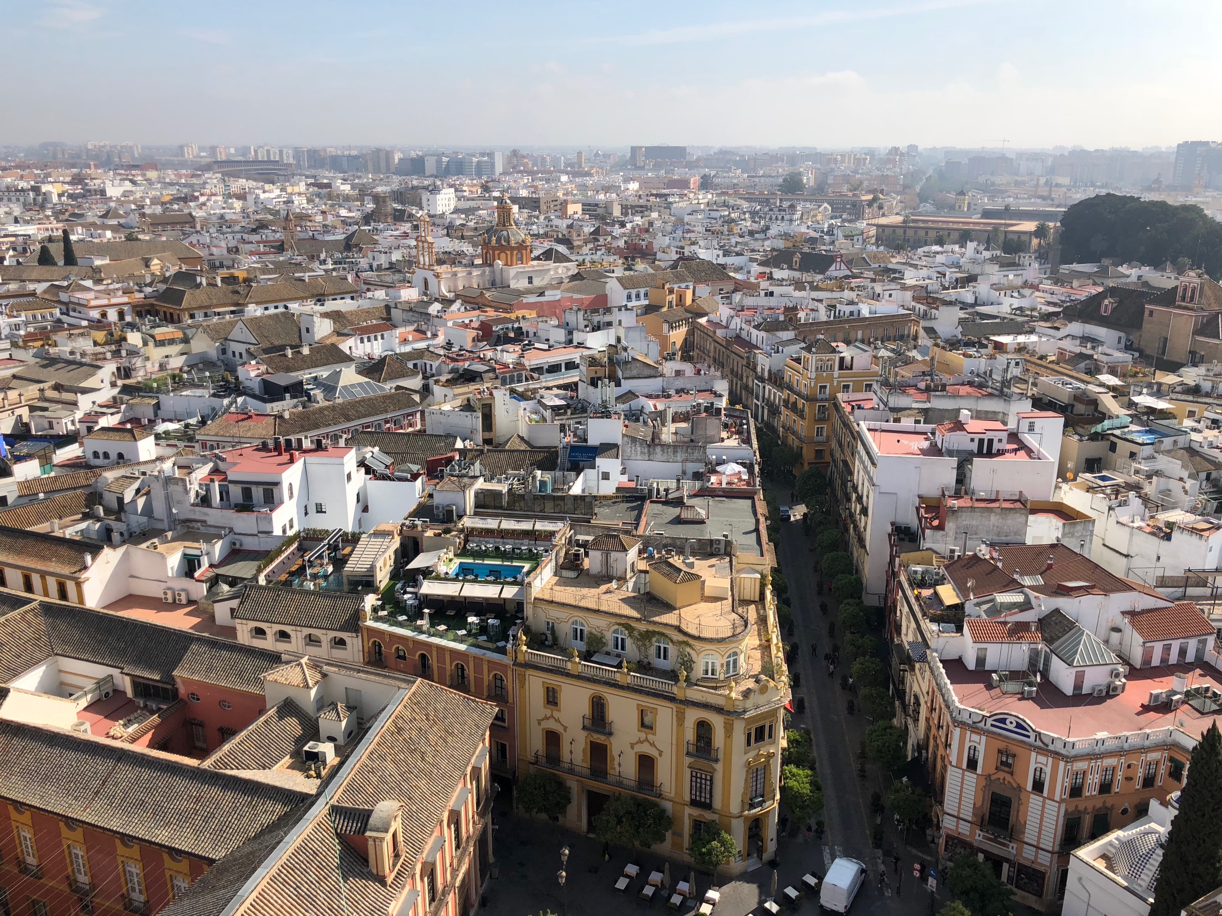 Sevilla is in large part a tourist town that thrives off of the monetary gains brought by travelers. It has a rich cultural past with famous attractions such as the Royal Alcázar, the Plaza de España, the Catedral de Sevilla and La Giralda, some of which date back to the 1400’s. Sevilla has a population under 1 million and seemed to be more open and walkable than Madrid, with bike lanes and a light rail system that had tracks imbedded into the street, making walkability over the tracks effortless. There were many pedestrian only streets in the old parts of town. Like the other small cities we visited, Sevilla is making strides towards improving air quality with cleaner electric work vehicles in various parts of the town. In general if felt cleaner than Madrid.