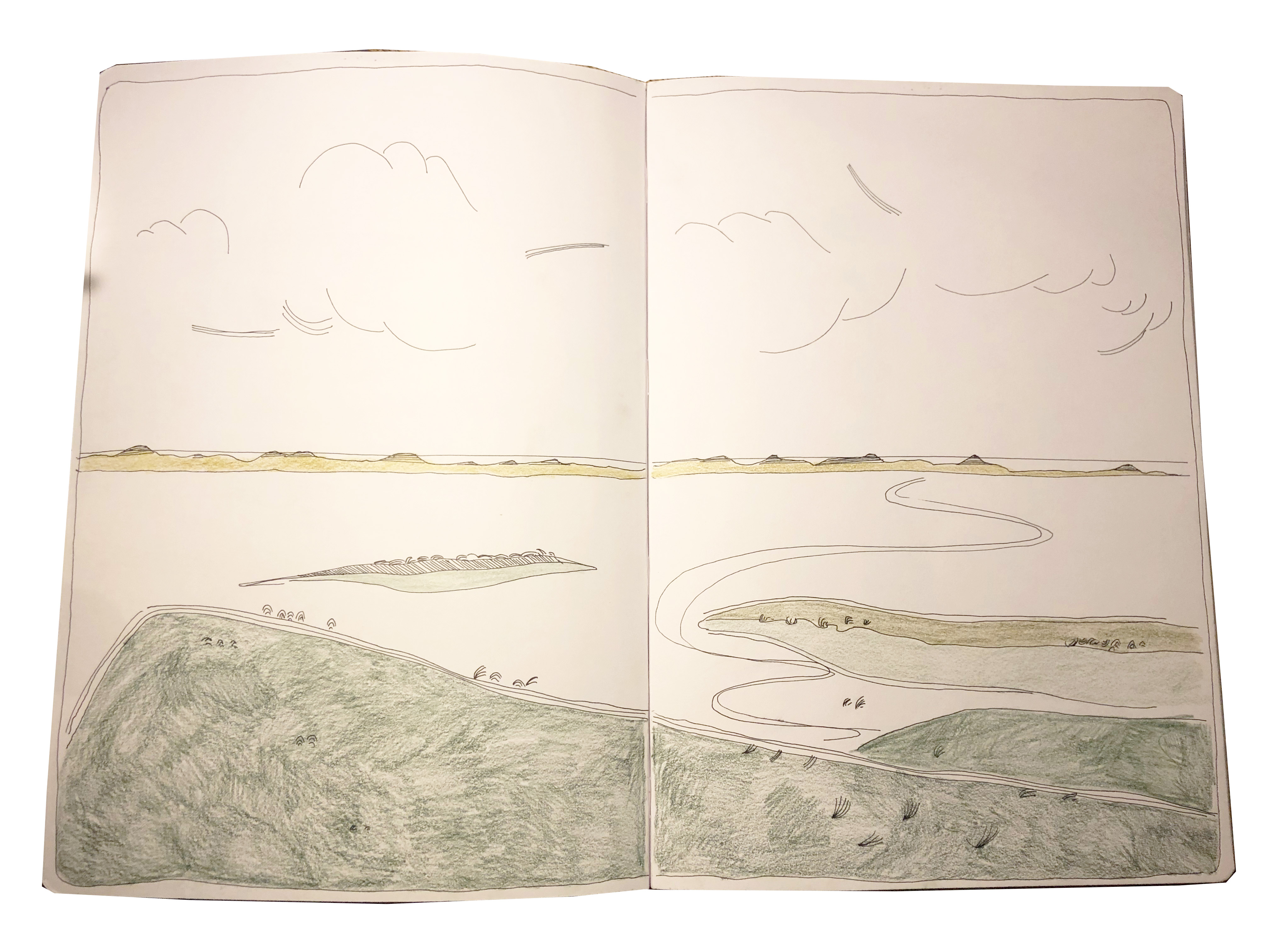 A drawing of the Marker Wadden landscape from an observation tower.
