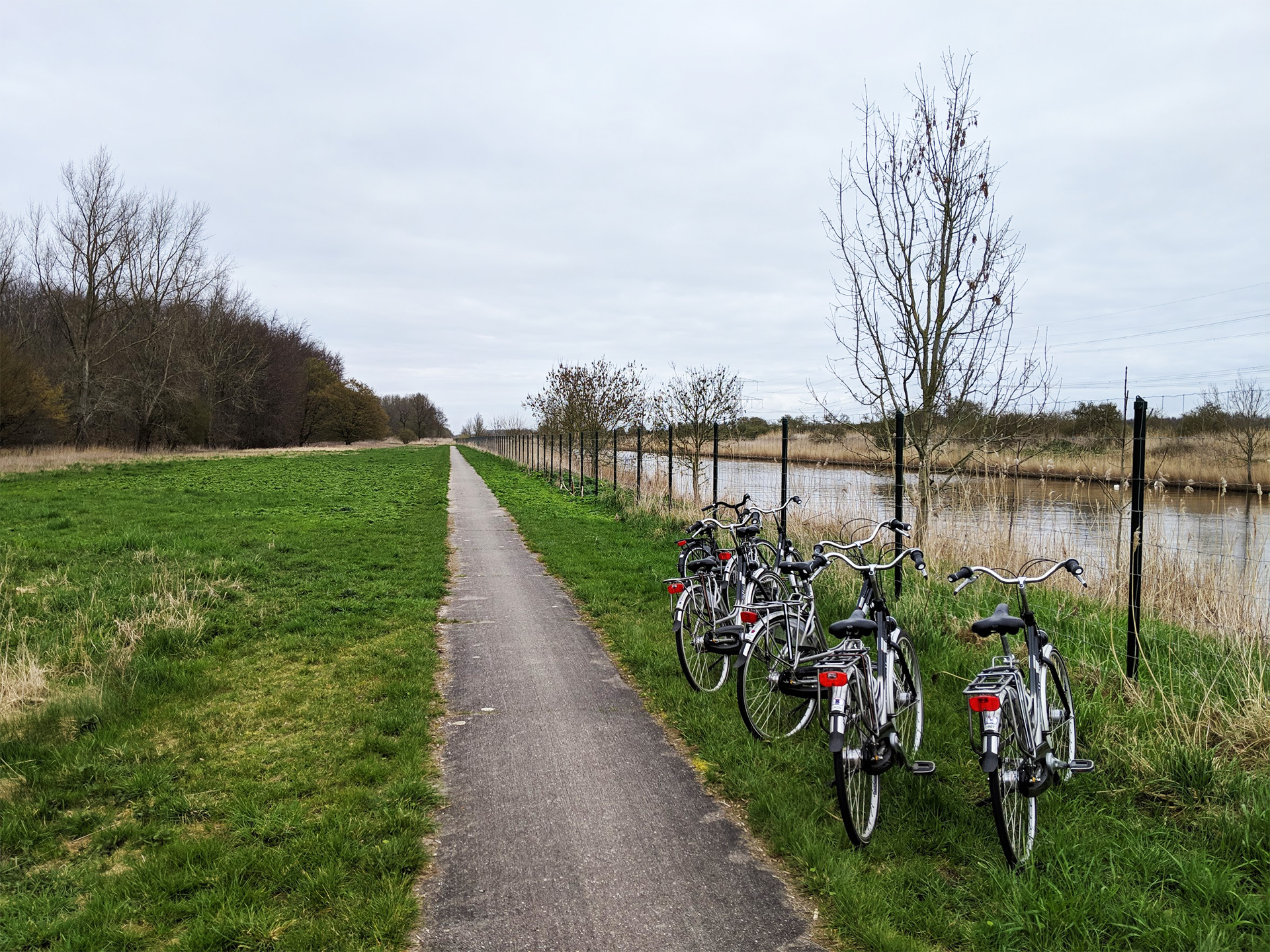 It is the beginning of spring, and we are starting to see the bright green of fresh grass poke up amongst the experimentally built corrals used to try to protect areas of reforestation. It is an alien feeling landscape, with remnants of its proposed industrial and agricultural past layered around us. As we walk to the bird blind and the purposefully flooded marsh area, we are able to see how the intended agricultural ditches still line up to us in 90 degree angles, just now filled with a cacophony of water birds. From this point it is also easy to distinguish several points on the horizon: the housing towers of Almere, the telefonica tower of Lelystad, and the train that marks the southern edge of the park. It’s a surreal experience to be out in a pseudo-savannah and see a bright yellow and blue elevated commuter train stream by just above the horizon every 15 minutes.