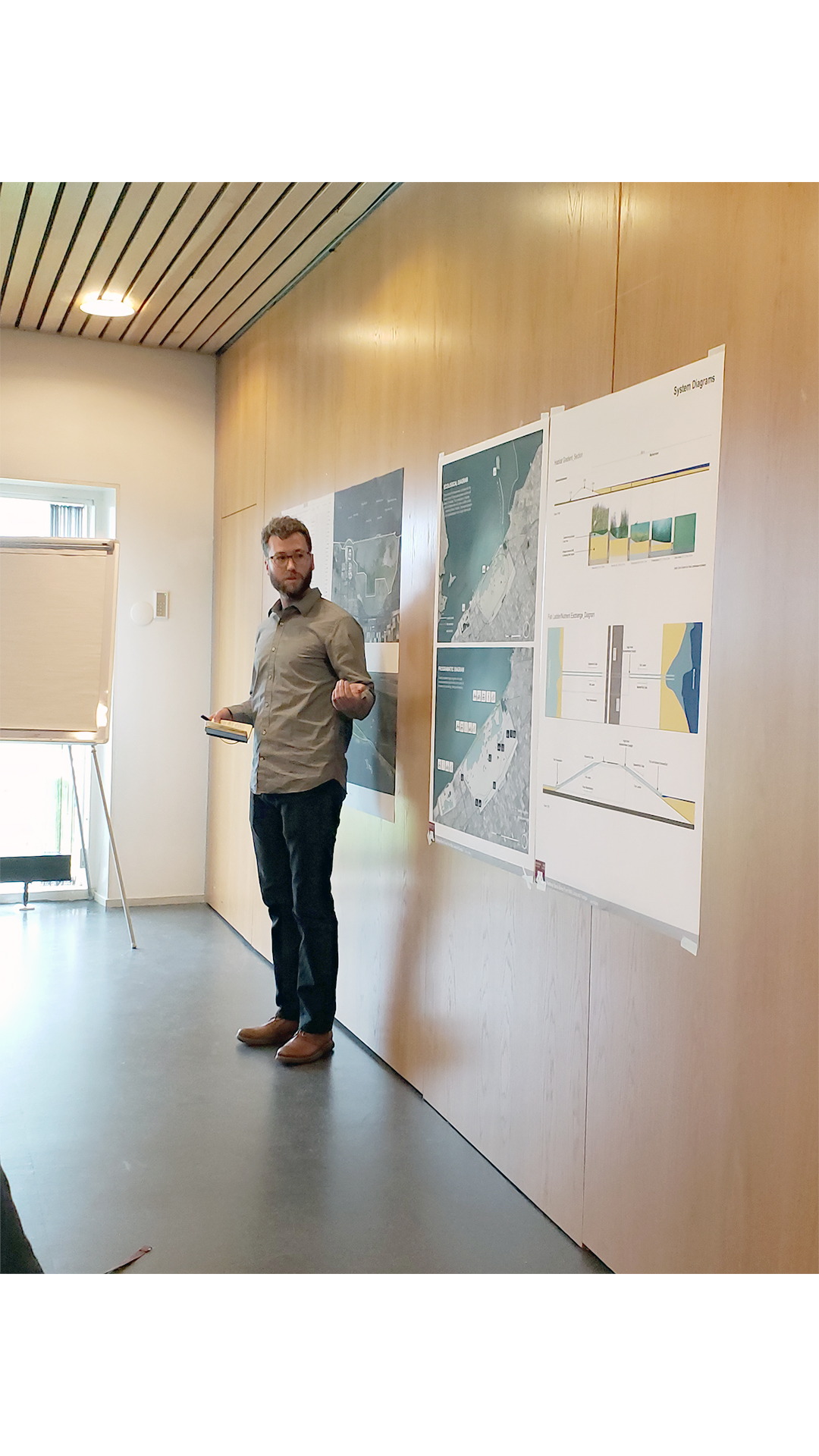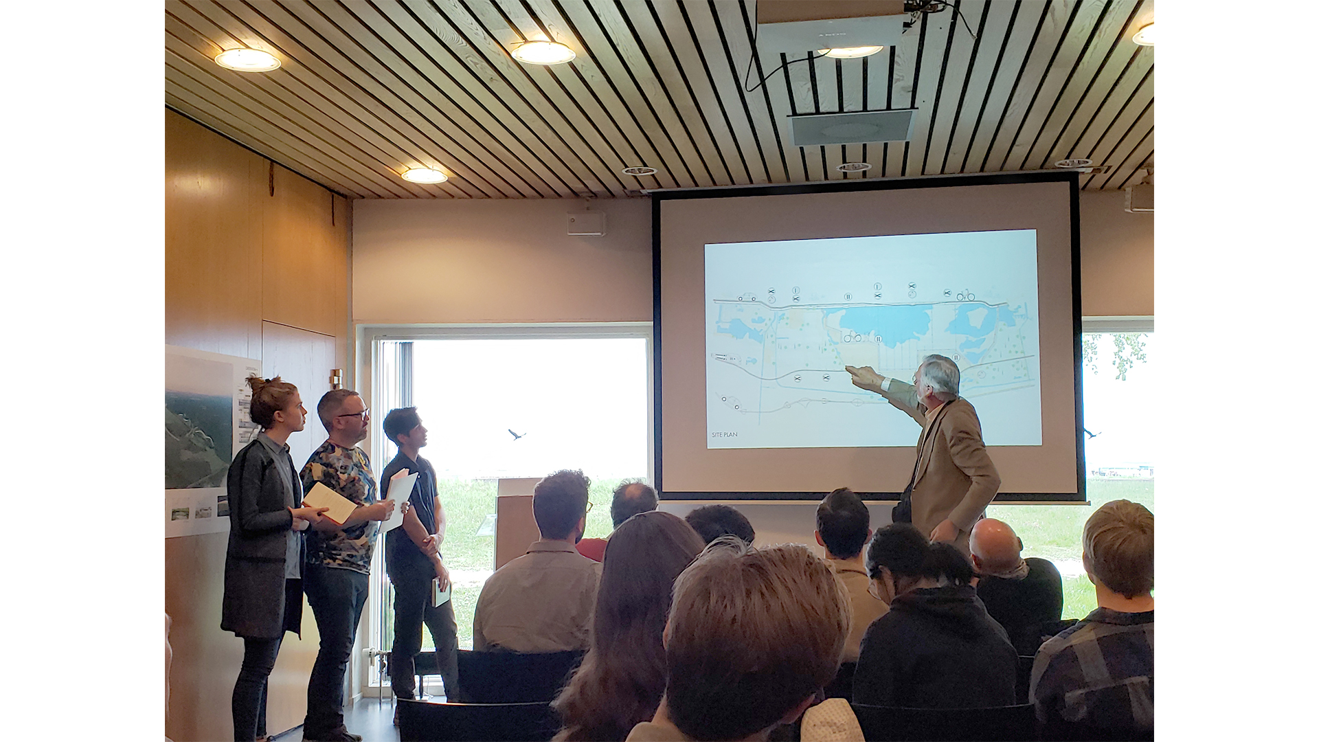 Matthew further explaining the intent of his groups design of further framing the long horizon through the existing transportation modes around the Oostvaardersplassen.