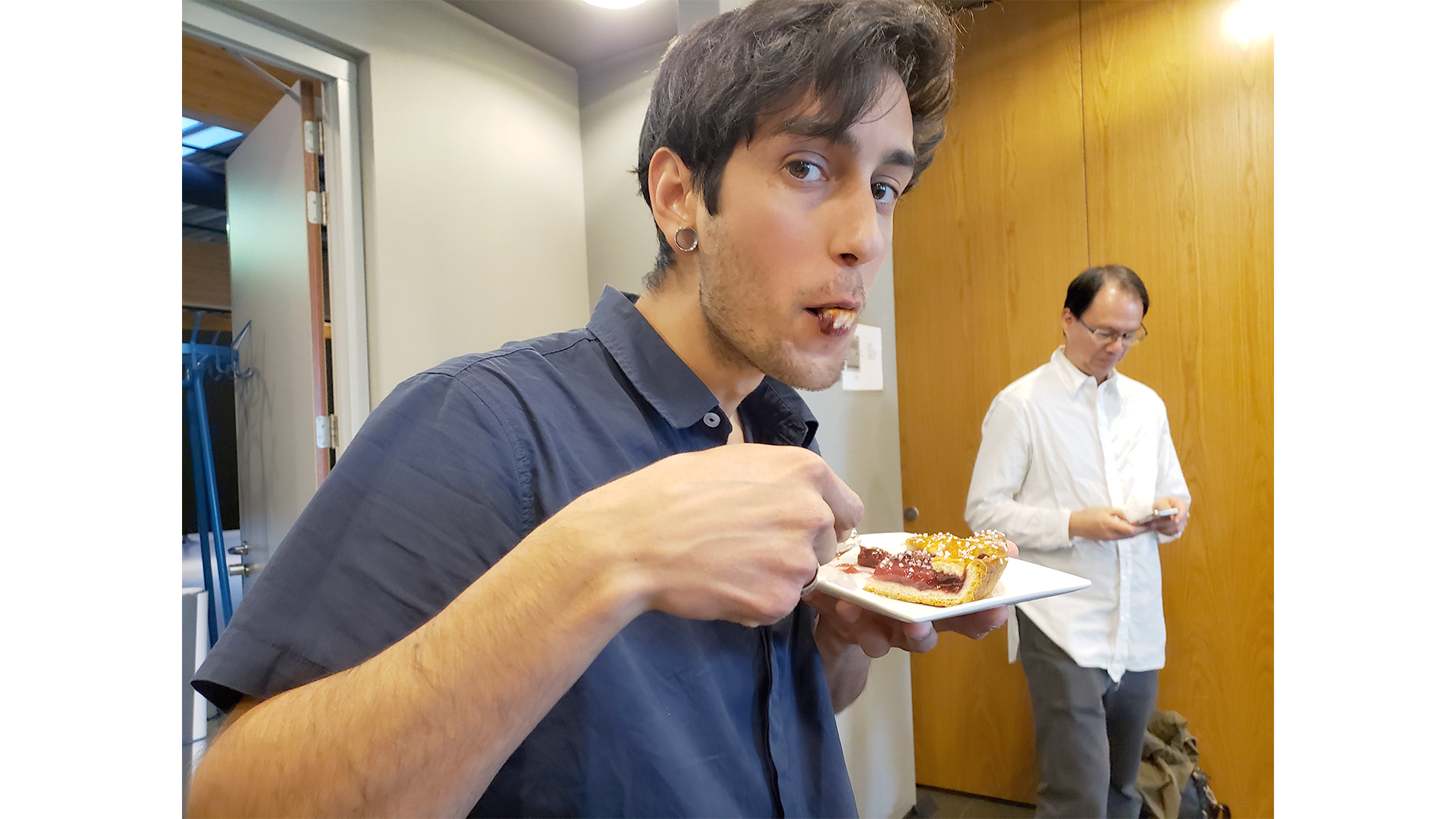Before presentations started, everyone enjoyed some delicious pie, coffee, and tea. Pictured is Nikolai taking advantage of the opportunity.