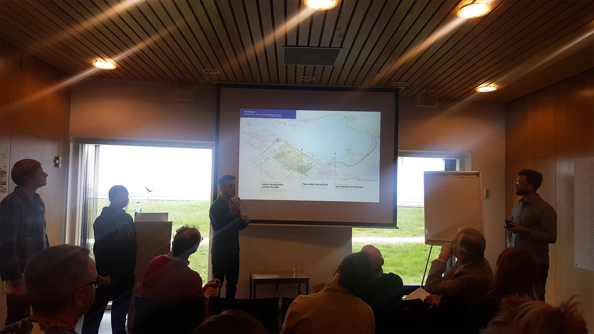 Will Linscott explaining part of his groups project addressing their solution to improve the ecological gradient along the dike in Oostvaardersplassen.