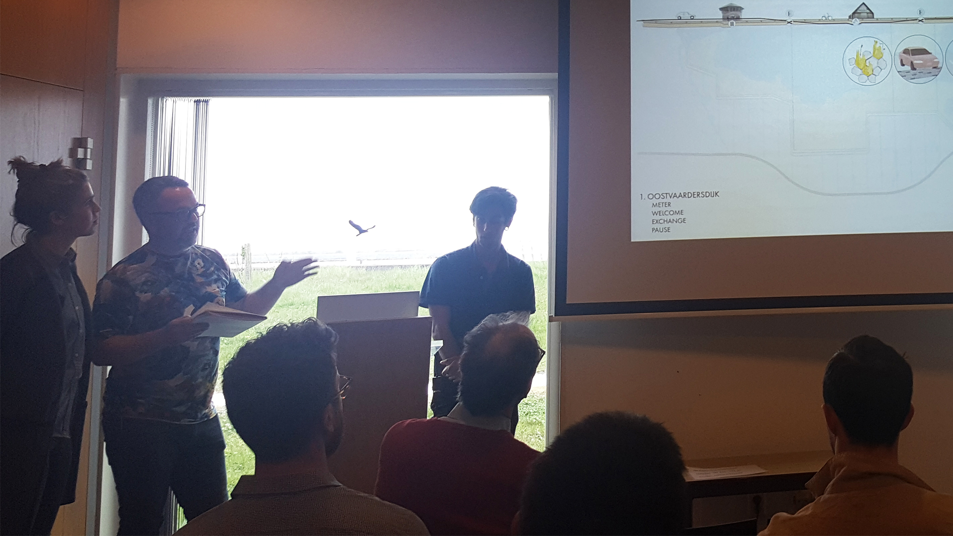 Andrew presenting the locations of his groups interventions along the dike between Almere and Lelystad that focuses on creating self forming ecosystems.